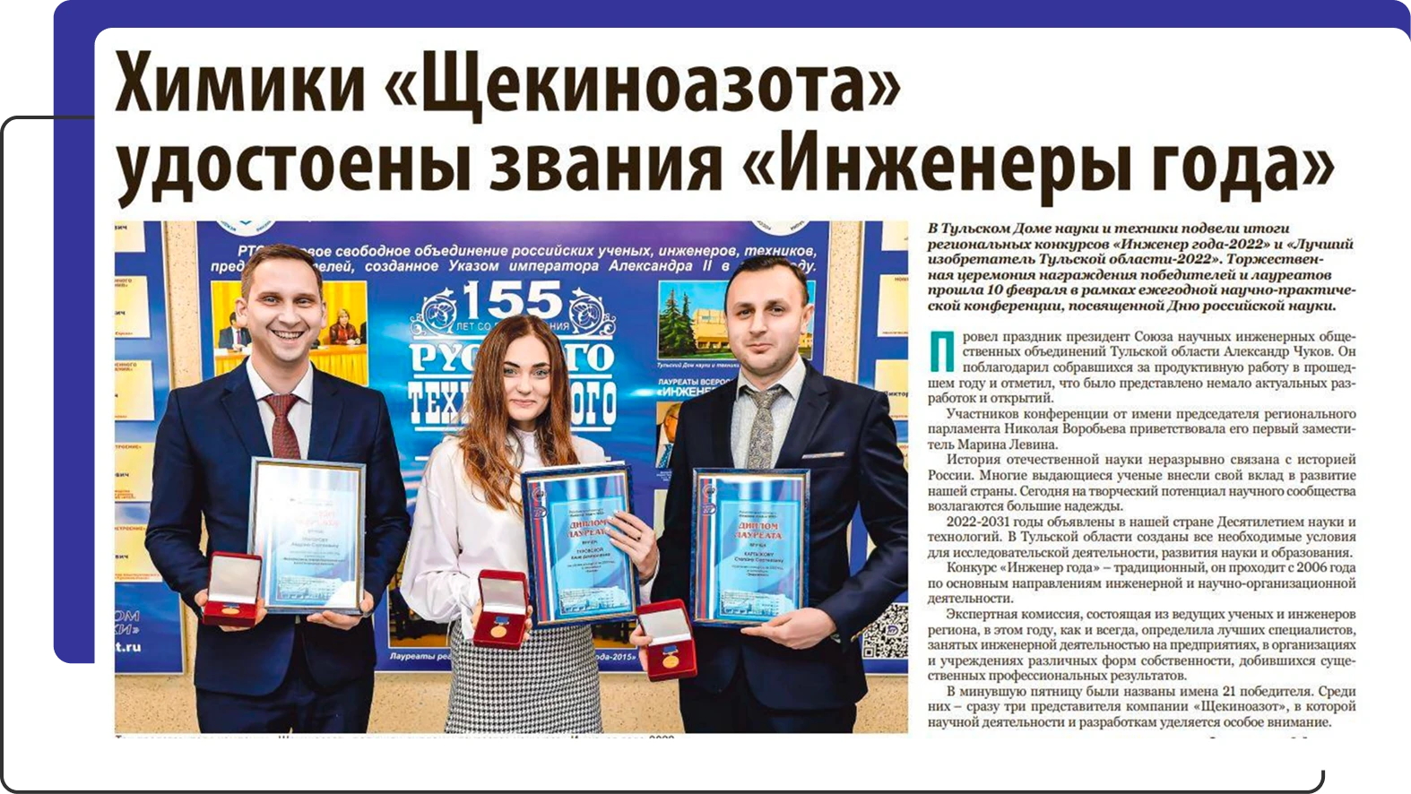 В 2022 году участвовал во II научно-технической конференции молодых специалистов АО «Щекиноазот» – теперь с проектом «Система усовершенствованного управления технологическим процессом установки ХВО М450 (Advanced process control)».