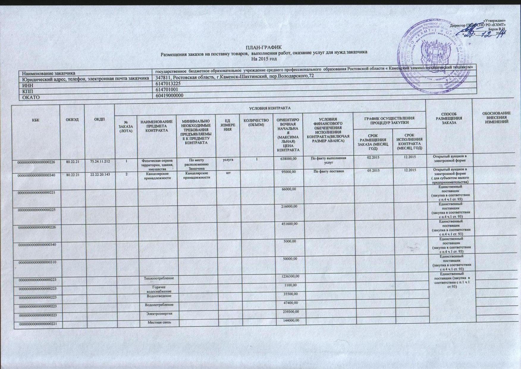 - План график от 29.12.2014