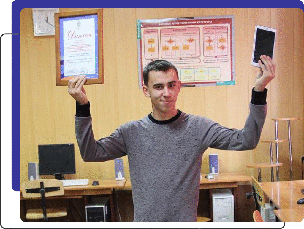 Бырка Г.В., Завьялова А.Э., Масалова А.А., победителей Всероссийского конкурса работ научно-технического творчества студентов, обучающихся по программам СПО в номинации «Радиоэлектроника, оптика, приборостроение», проходившего в г. Москва, научный руководитель — Орлов В.А.